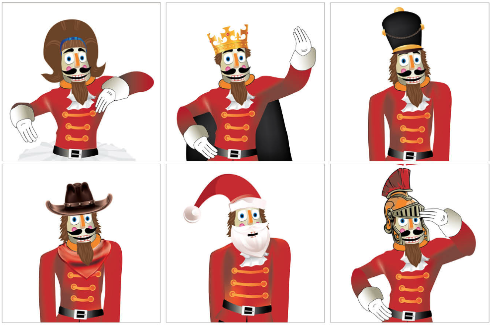 I started playing with the concept—drawing nutcrackers from the torso up, experimenting with different characters, different expressions, different personalities.